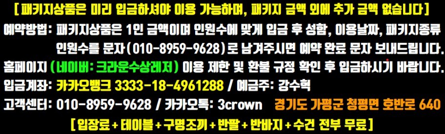 - 당일 패키지: 네어버 예약 또는 전화문의