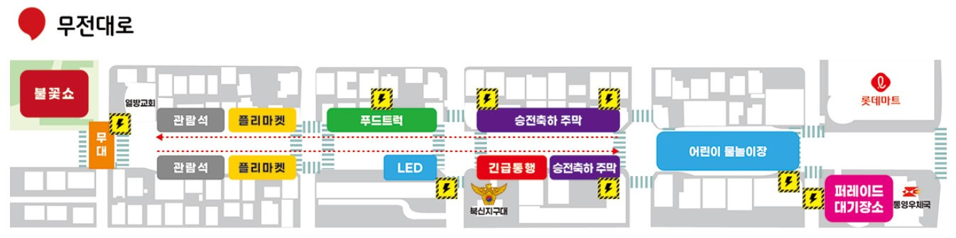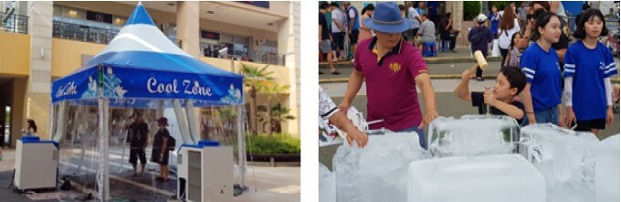 혹서기 축제 진행을 위한 휴게공간을 설치 운영. 행사장 존 별 이동식 에어컨 설치 및 얼음 비치 (무더위 대피소, 휴게공간) |
